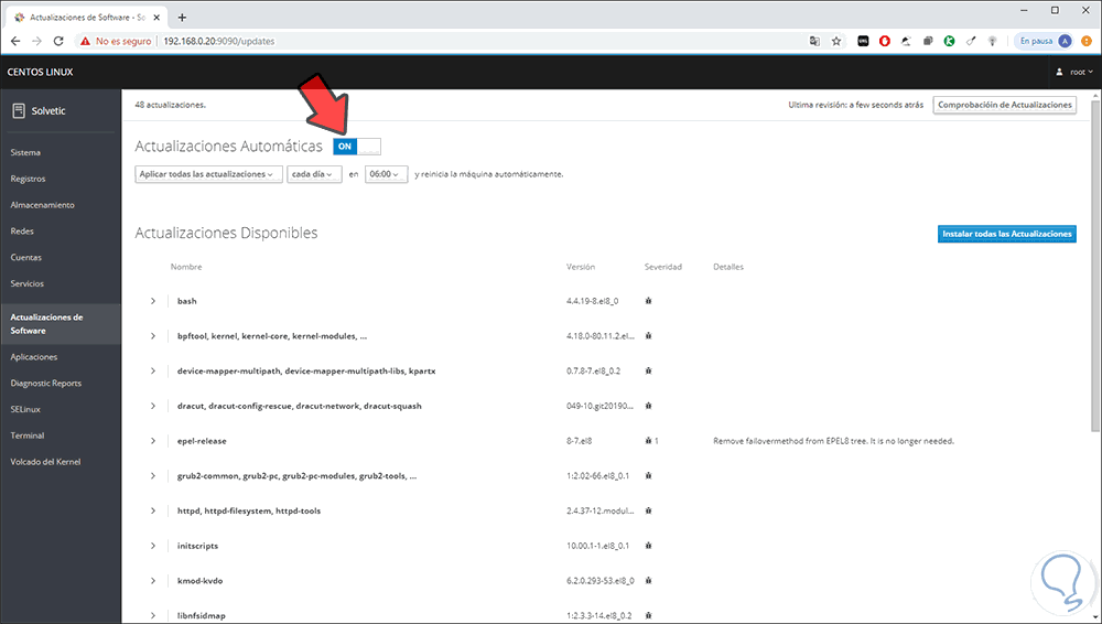 3. Cómo activar actualizaciones automáticas en CentOS 8 a través de la consola web