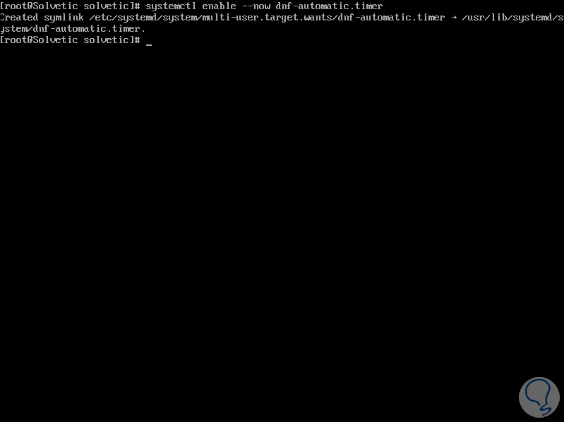 Por último, vamos a ejecutar DNF-automatic, para ello vamos a ejecutar el siguiente comando con el fin de programar las actualizaciones automáticas DNF en CentOS 8: