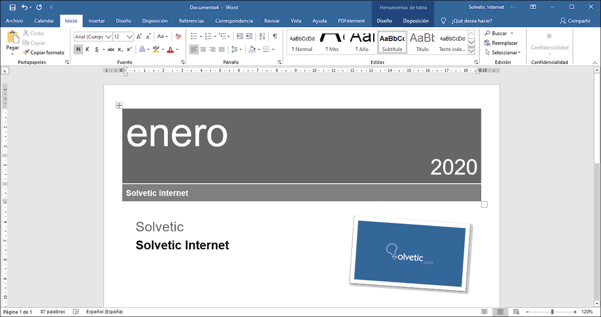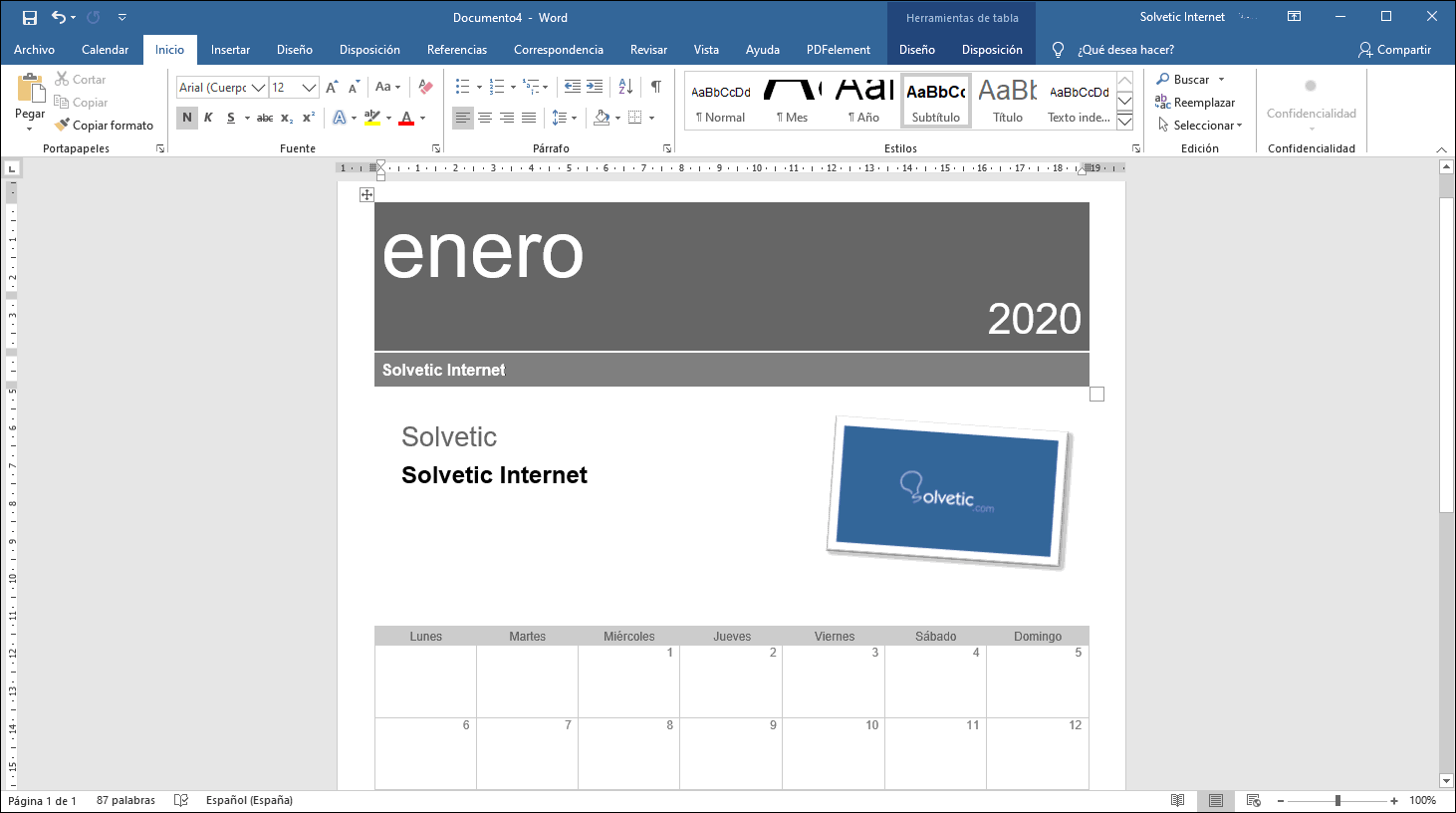 Allí se activa el menú Herramientas de tabla donde podremos aplicar diferentes formatos al calendario. El resto de proceso será copiar, pegar y editar las fechas del año 2020.