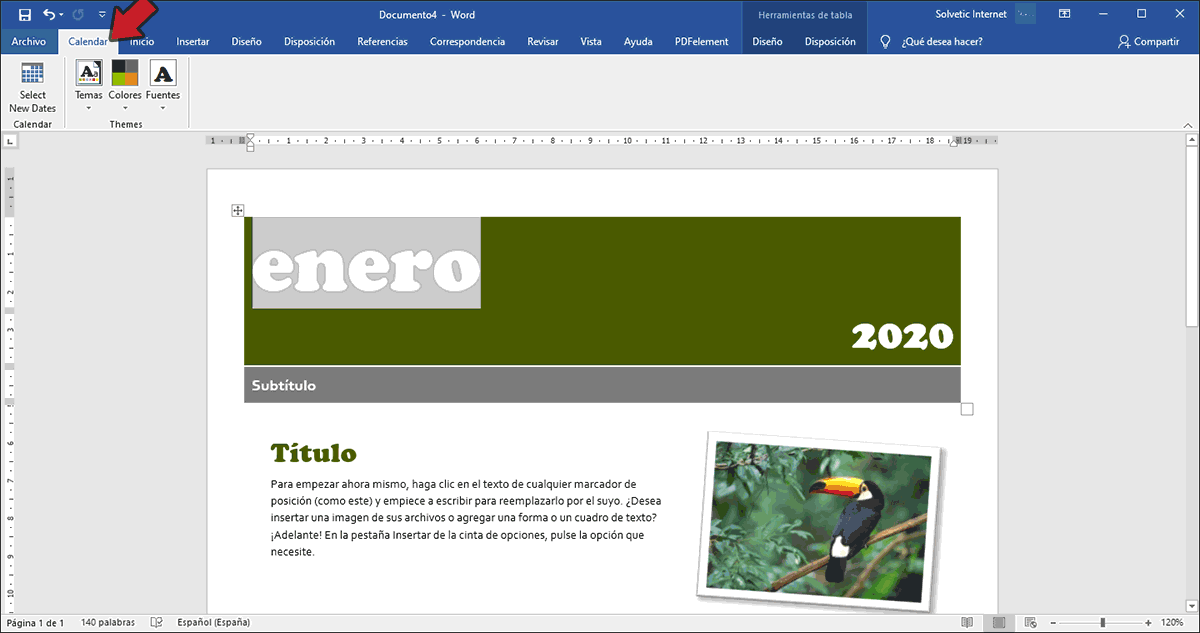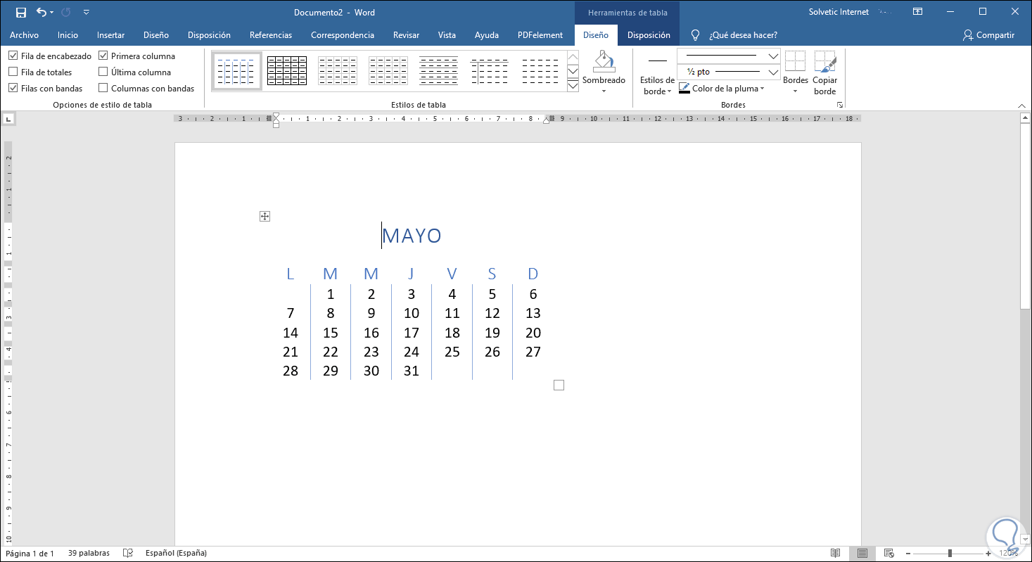 1. Cómo hacer un calendario en Word 2019 o 2016