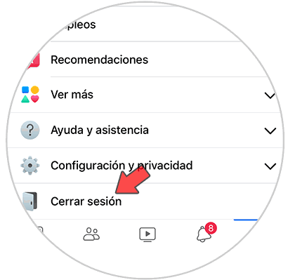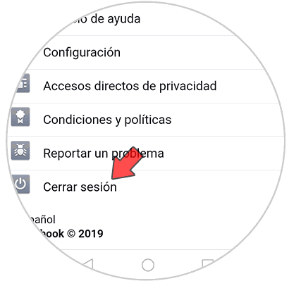 Allí pulsamos en el menú de Facebook y en las siguientes opciones ubicamos “Cerrar sesión” en la parte inferior: