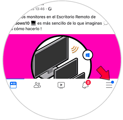 Lo primero que debes hacer es entrar en tu cuenta de Facebook y desplegar el menú de la parte inferior