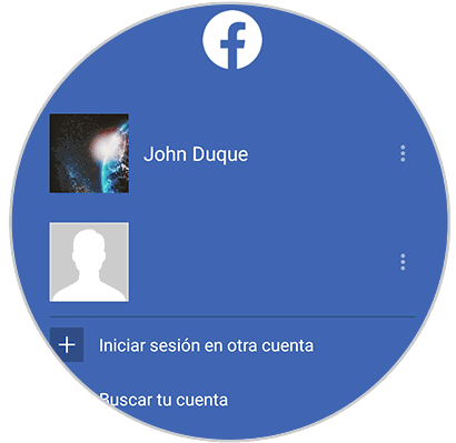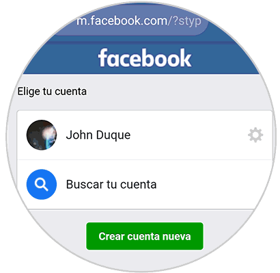 A continuación seremos redireccionado a la pantalla principal de Facebook donde podremos iniciar de nuevo sesión con la cuenta actual o con una nueva.