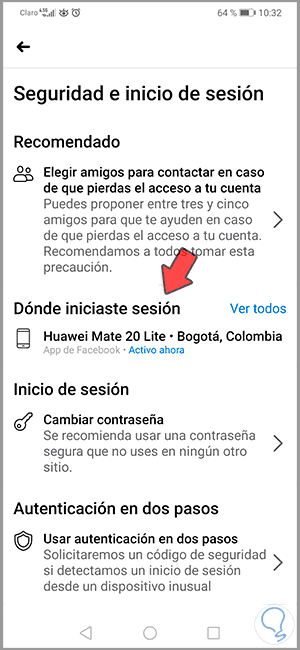 Como resultado de esto, veremos que en ese dispositivo se ha cerrado la sesión actual de Facebook. Podemos pulsar sobre la línea “Ver todos” para tener un panorama completo en caso de que sean múltiples dispositivos.