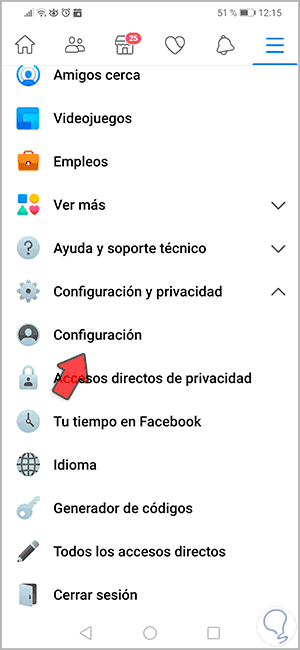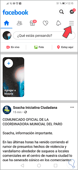 Si deseamos hacerlo directamente desde la aplicación de Facebook, debemos acceder a esta y veremos lo siguiente: