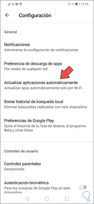 Al pulsar allí ubicaremos luego la opción “Actualizar aplicaciones automáticamente”: