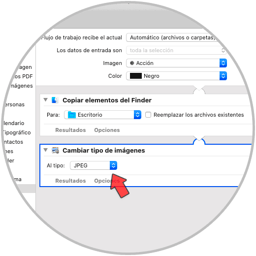 Nuevamente damos doble clic sobre ella y esta vez en el campo “Al tipo” seleccionamos JPEG: