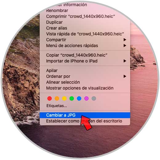 Una vez guardada, podemos dar clic derecho sobre la imagen HEIF o HEIC y seleccionamos la tarea que hemos creado: