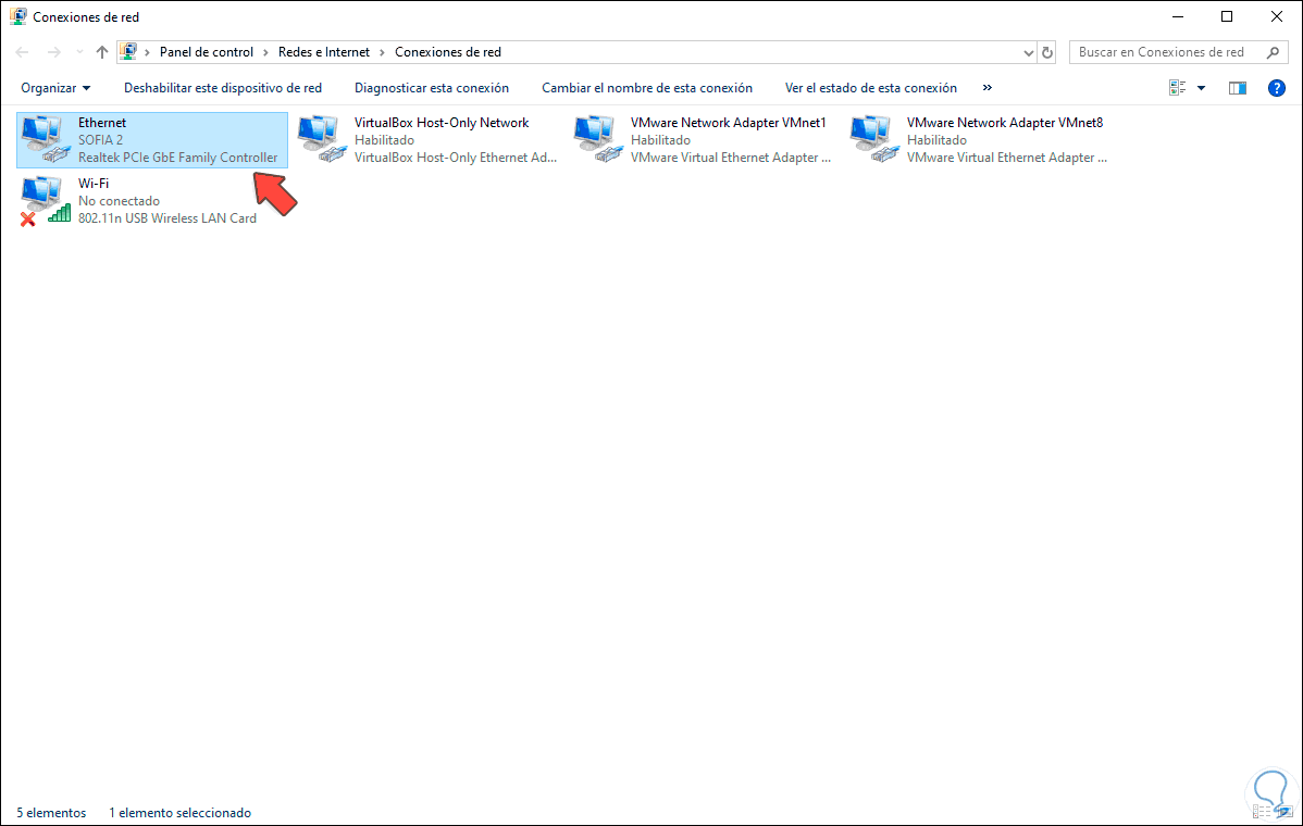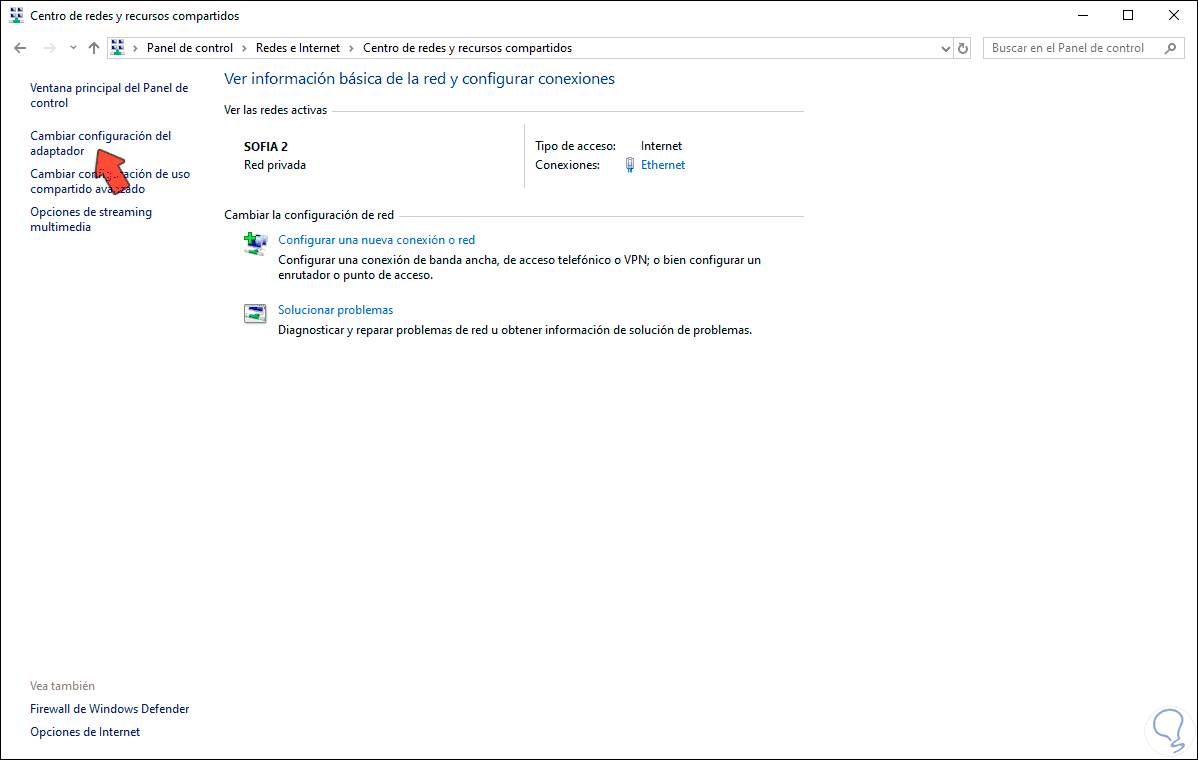 3. Ver velocidad tarjeta de red Windows 10 con Panel de Control