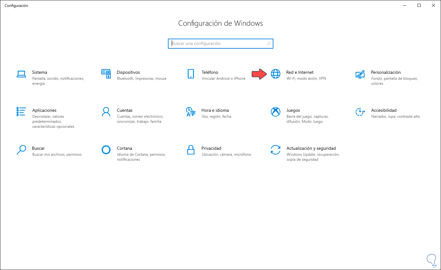 Para ello accedemos al menú Inicio / Configuración donde veremos lo siguiente: