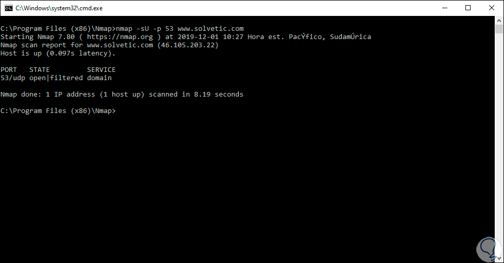"C:\Program Files (x86)\Nmap"Ahora si ejecutamos lo siguiente:
