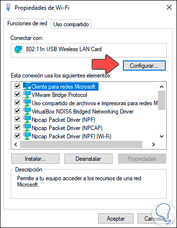 Ahora damos clic derecho / Propiedades y en la ventana desplegada seleccionamos “Configurar”: