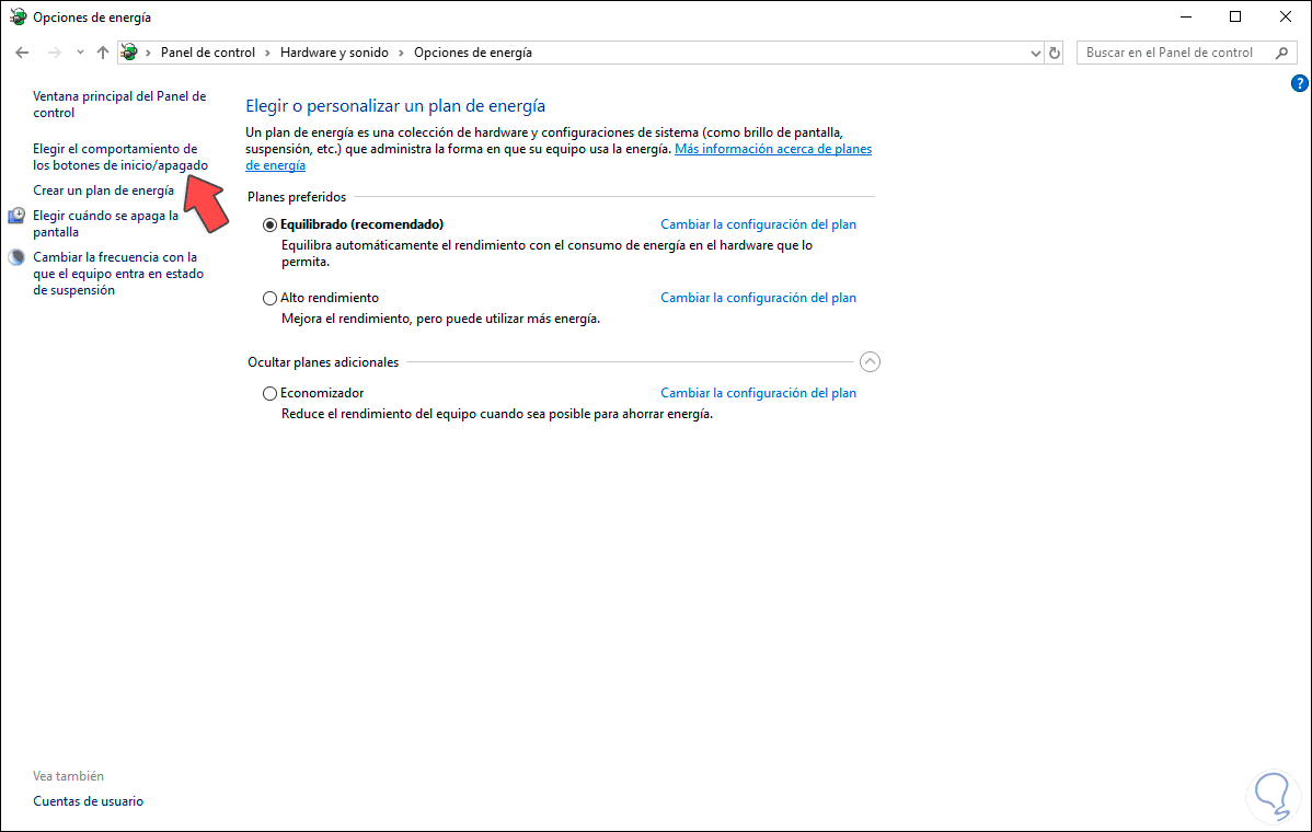 Además de ello, podemos definir un plan de energía antes de ello, para esto iremos a la siguiente ruta: