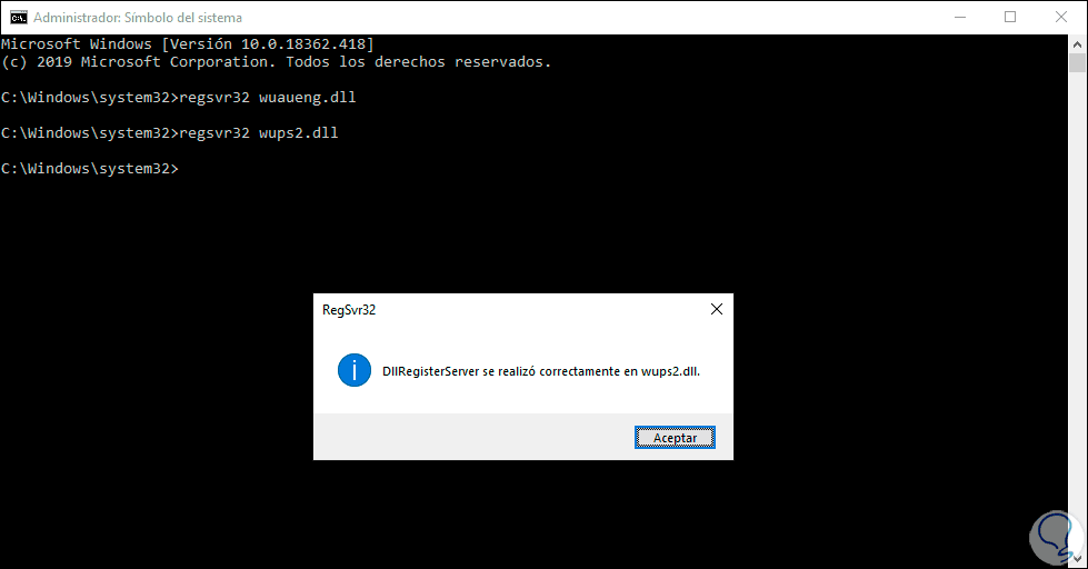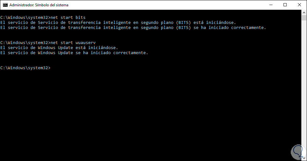 Con la ejecución de cada una de estas órdenes podemos ver una ventana emergente de confirmación. Después de ello debemos iniciar de nuevo el servicio Windows Update.