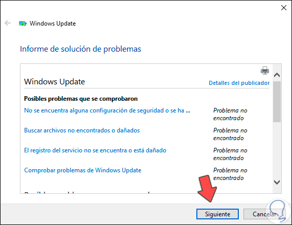 Una vez finalice el proceso podemos dar clic sobre la línea “Ver información detallada” para acceder a un completo resumen de los parámetros asociados de Windows Update con su respectivo estado: