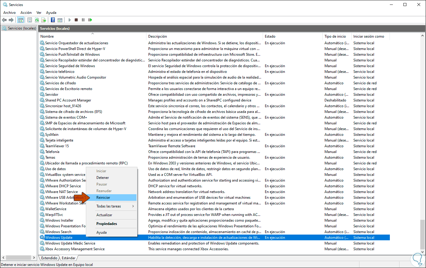 4. Solucionar error de Windows Uupdate reiniciándolo en Windows 10