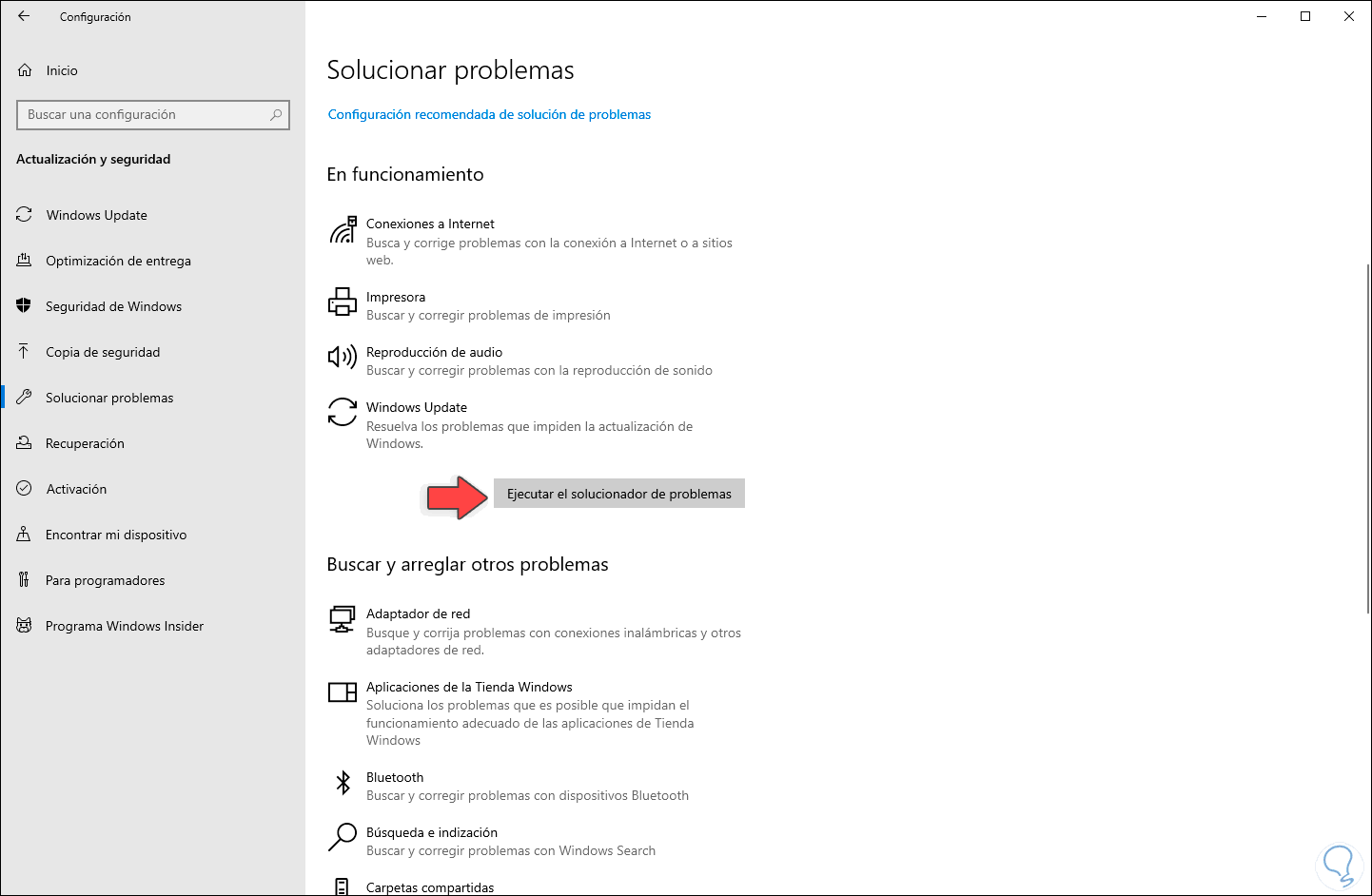 1. Solucionar error de Windows Update usando el Solucionador de problemas