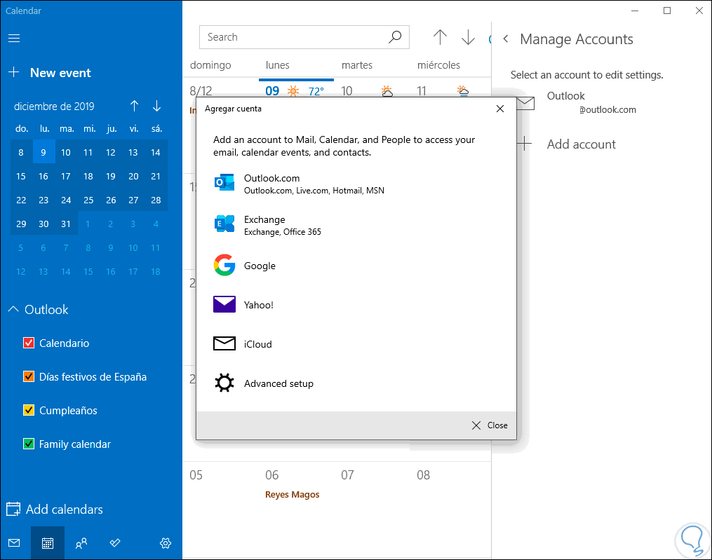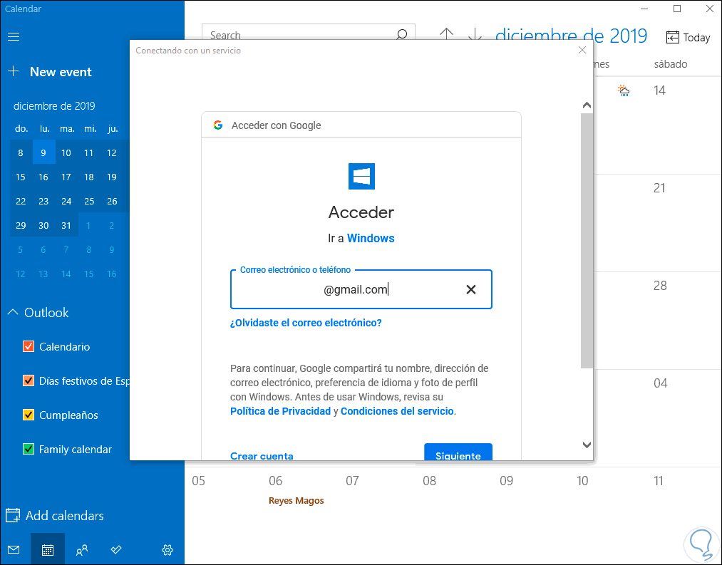 4. Cómo crear un calendario o vincular una cuenta en línea en Windows 10