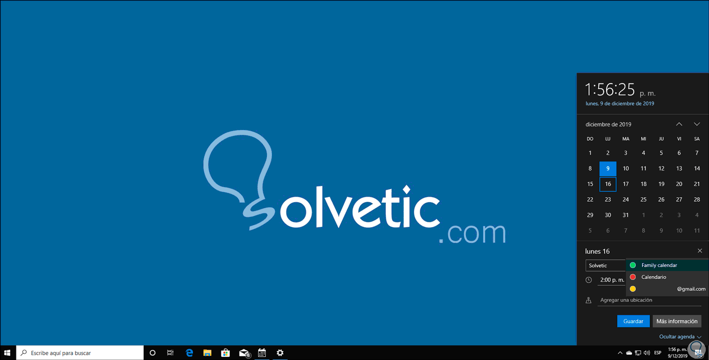 Ahora, si eres de los usuarios de Windows 10 que no le gusta hacer mucho uso de las funciones, es posible ver y crear eventos de calendario desde la barra de tareas de Windows 10 sin acceder a la función Calendario, este mismo proceso nos permite vincular cuentas adicionales como Google Calendar o iCloud Calendar. De esta forma podremos tener agrupados nuestras cuentas de correo y así asignar diferentes eventos que sean importantes de reseñar en nuestro calendario y recibir aviso de ello.