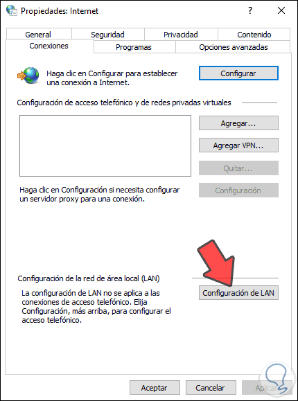 Lo siguiente que debes hacer es pulsar sobre “Opciones de Internet” y en la nueva ventana acceder a la pestaña de “Conexiones: