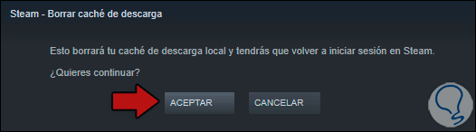Pulsamos en Aceptar para que se proceda con la ejecución de reparación de Steam.