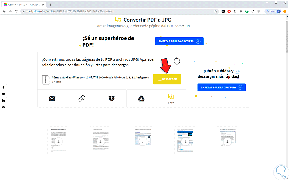 Una vez se suba veremos lo siguiente. Damos clic sobre el botón “Convertir a JPG”.