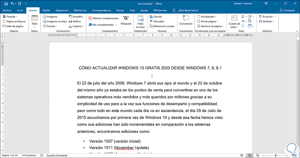Por esta razón en este tutorial Solvetic te explicará diferentes formas para insertar PDF en Microsoft Word y aplica para las versiones 2016 o 2019 de igual forma.