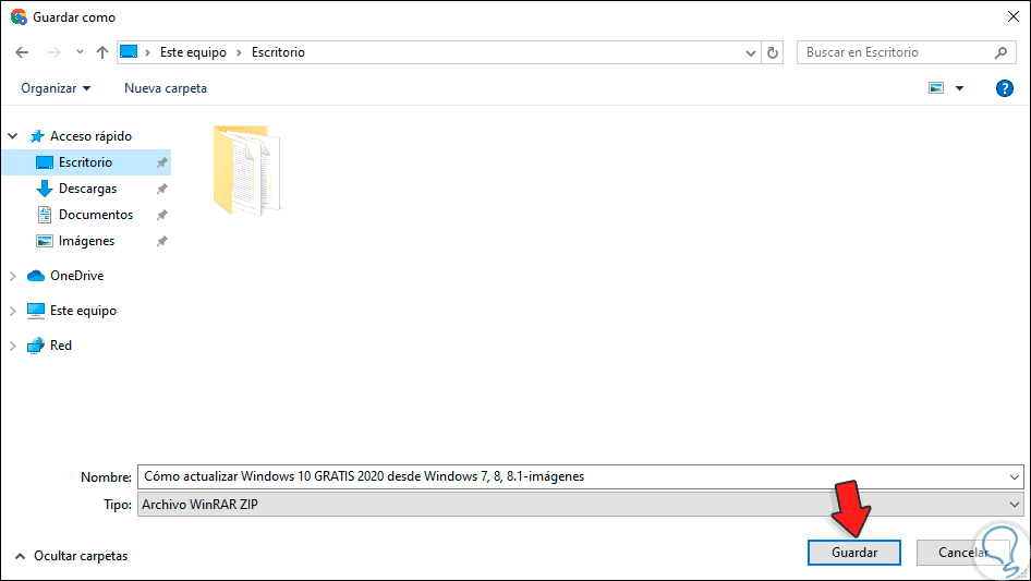 Este se descargará en formato comprimido. Damos clic en "Guardar".