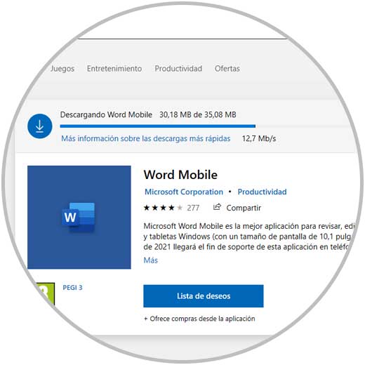 Al dar clic Obtener seremos dirigidos a la tienda de Windows 10 para proceder con la descarga a nuestro móvil o tableta.