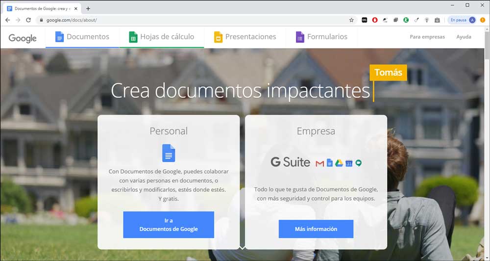 O finalmente otra opción 100 % gratuita es usar Documentos de Google la cual no es exactamente Word, pero cumple muchas de sus funciones totalmente en línea, para ello podemos ir al siguiente enlace y acceder con nuestra cuenta de Google: