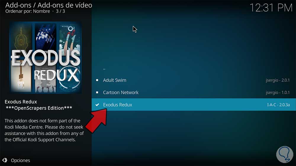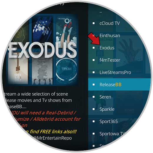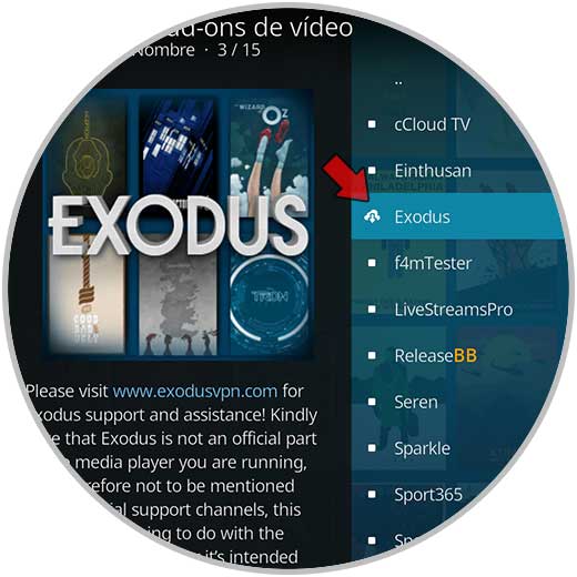 Para esta configuración, iremos a Add-on, Add-on de video / Exodus: