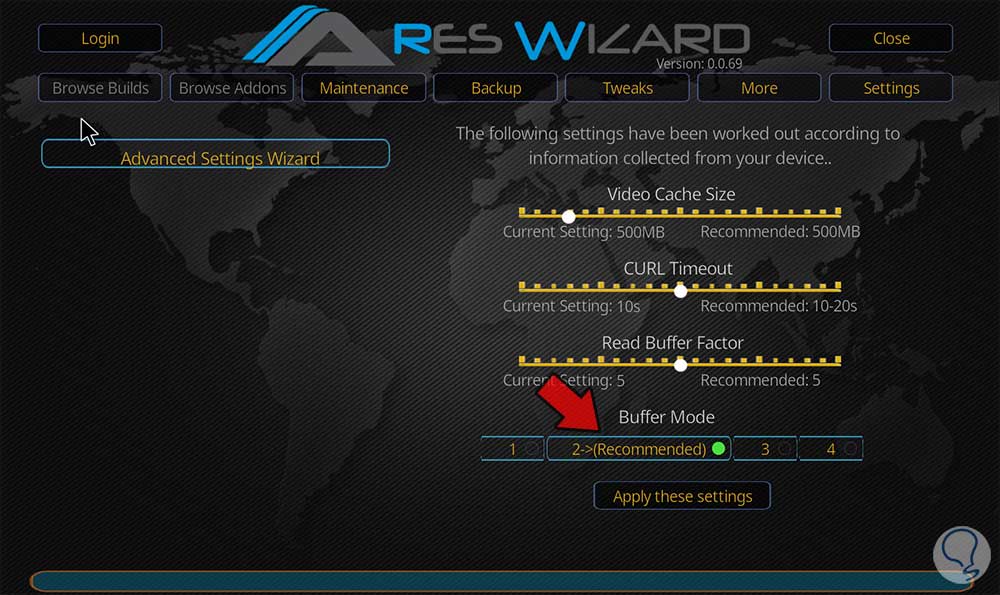 Una vez instalado Ares Wizard accedemos a el e iremos a la pestaña Tweaks y en Advanced Settings Wizard encontramos las opciones de cache para video: