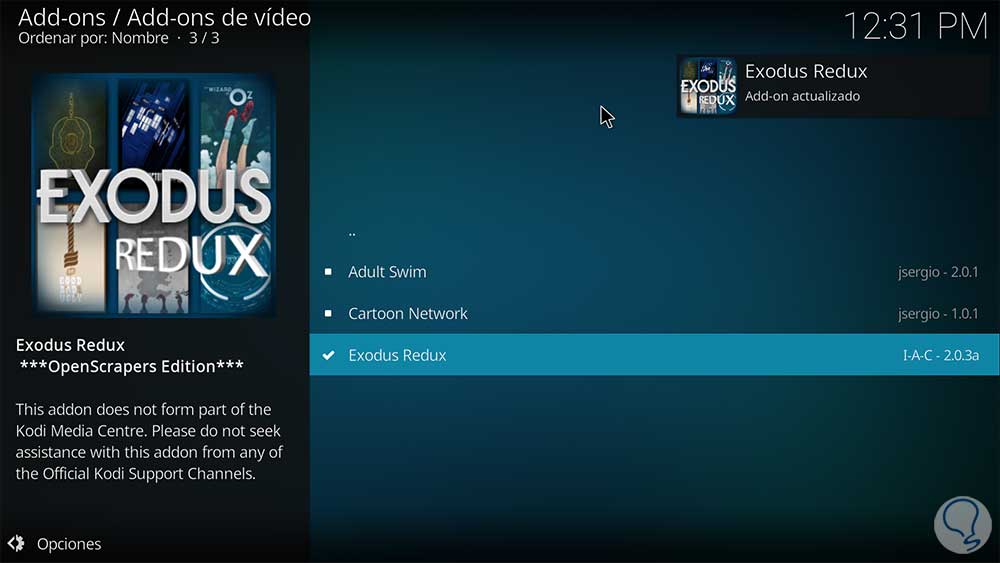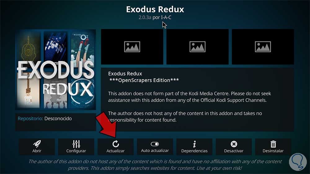 Este proceso implica dos opciones que son, actualizar directamente el complemento Exodus o bien reinstalarlo de nuevo.