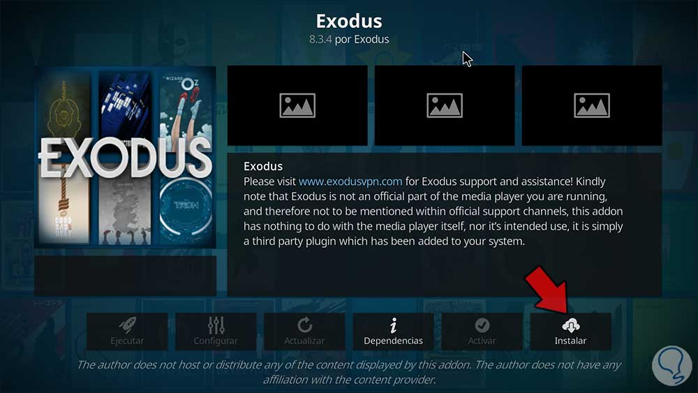 Kodi integra una interfaz gráfica de usuario (GUI) desde donde la cual podremos acceder a videos, fotos, podcasts y música desde diferentes medios de almacenamiento. Al ser una aplicación de código abierto, podemos encontrar numerosos complementos que harán la vida mucho más completa. Uno de estos es el complemento Exodus, el cual es un addon de video en que se encuentran disponibles diversos contenidos de películas y series en multi-enlace.