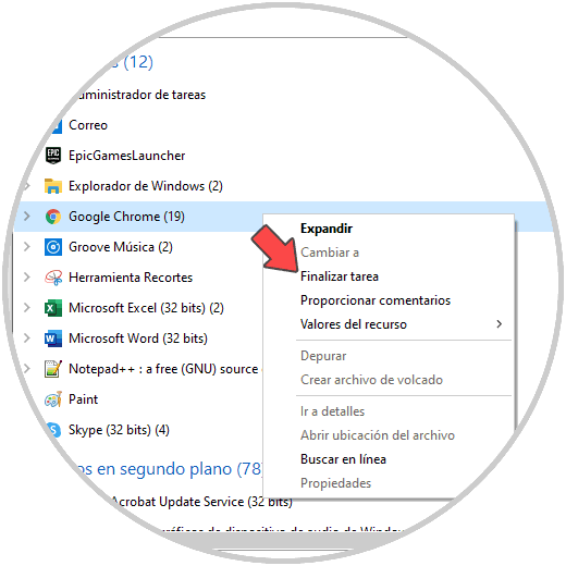 Para supervisar esto iremos al Administrador de tareas y en la pestaña “Procesos” determinar cuáles aplicaciones están consumiendo el ancho de banda, si alguna llega a ser alta podemos cerrarla de dos formas:
