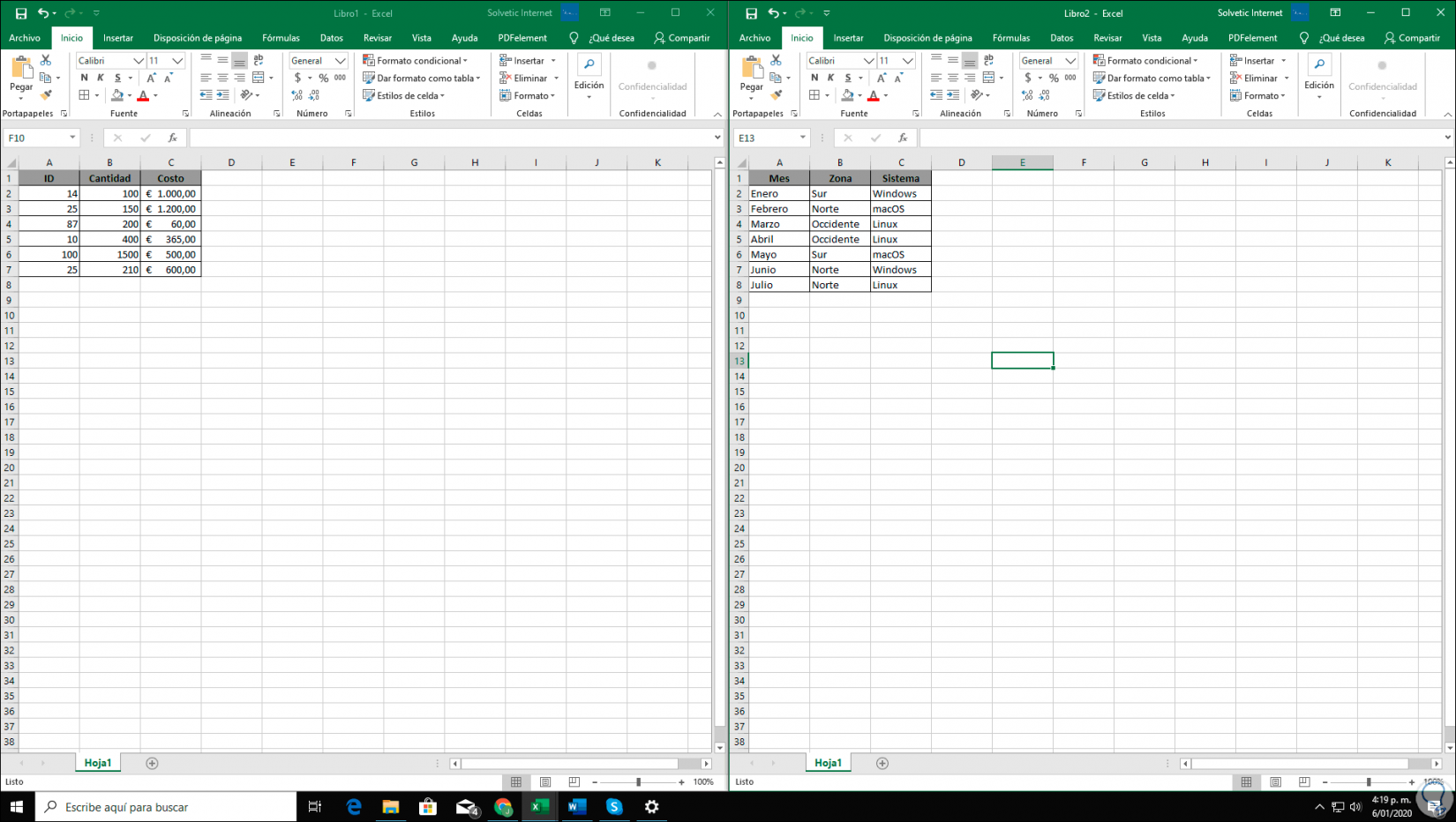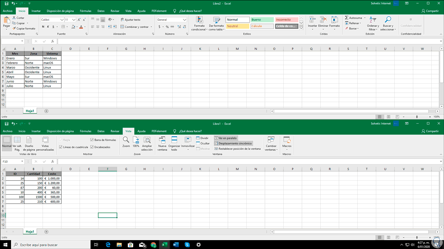 3. Cómo abrir dos archivos de Excel en ventanas diferentes usando usando el modo de Vista de Excel en Windows 10