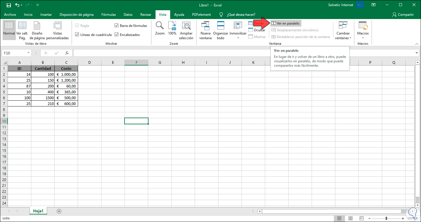 Esta es una de las funciones integradas en las nuevas versiones de Excel y para usar de ella debemos ir a alguno de los libros abiertos y allí vamos al menú “Vista” y en el grupo “Ventana” encontramos la opción “Ver en paralelo”. Al dar clic sobre esta opción, los libros de Excel activos se ubicarán de forma horizontal para que podamos trabajar en ellos de una forma independiente.