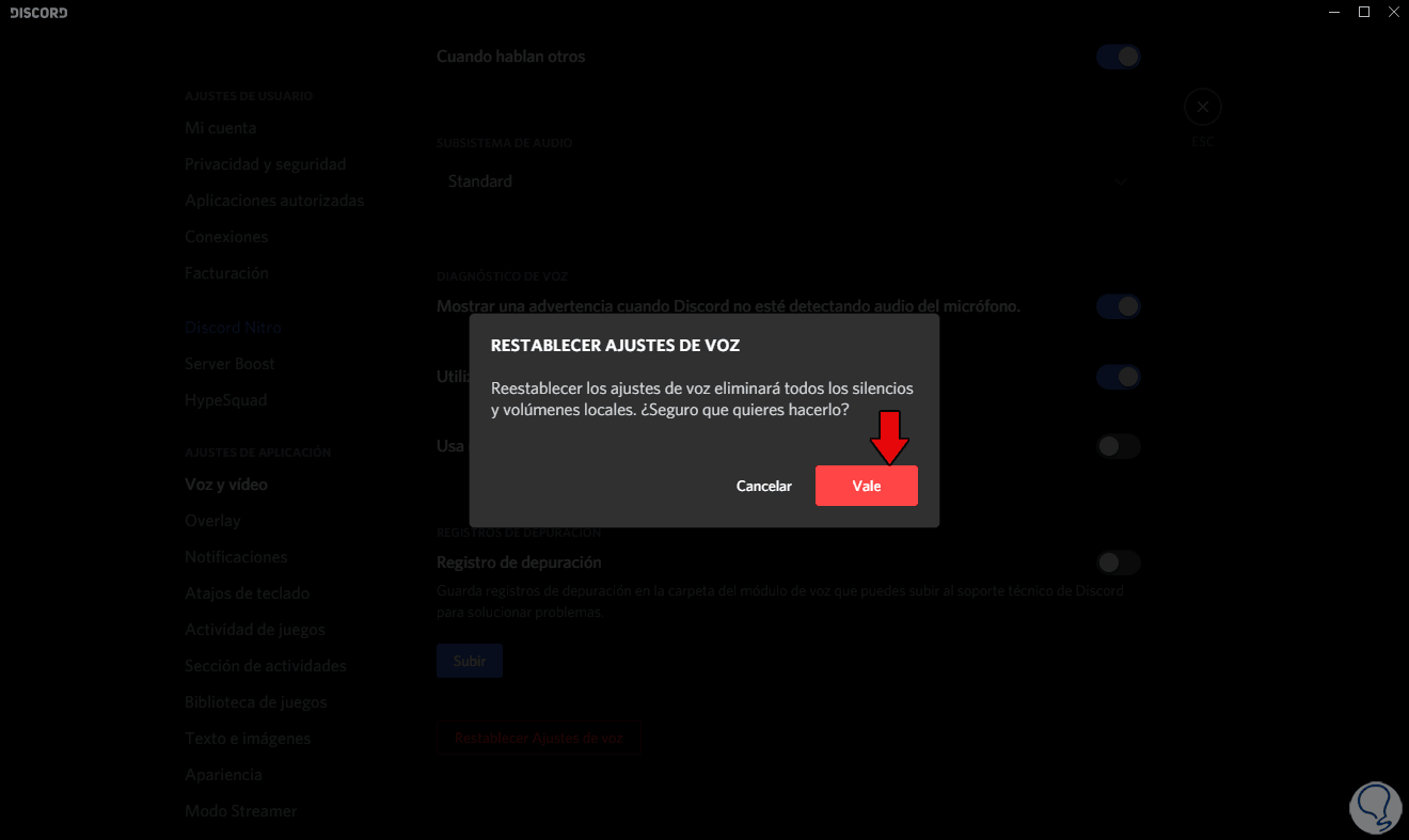 5. Restablecer la configuración de voz en Discord para solucionar micrófono no funciona
