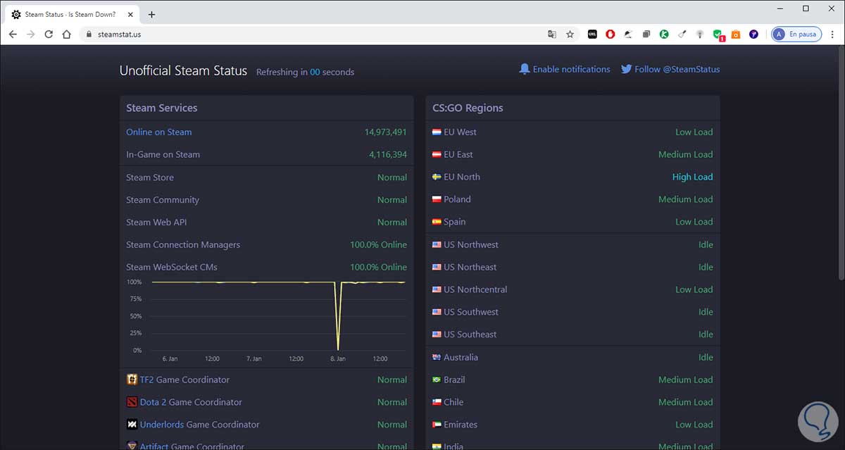 2. Cómo comprobar el estado del servidor de Steam para solucionar error 503