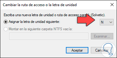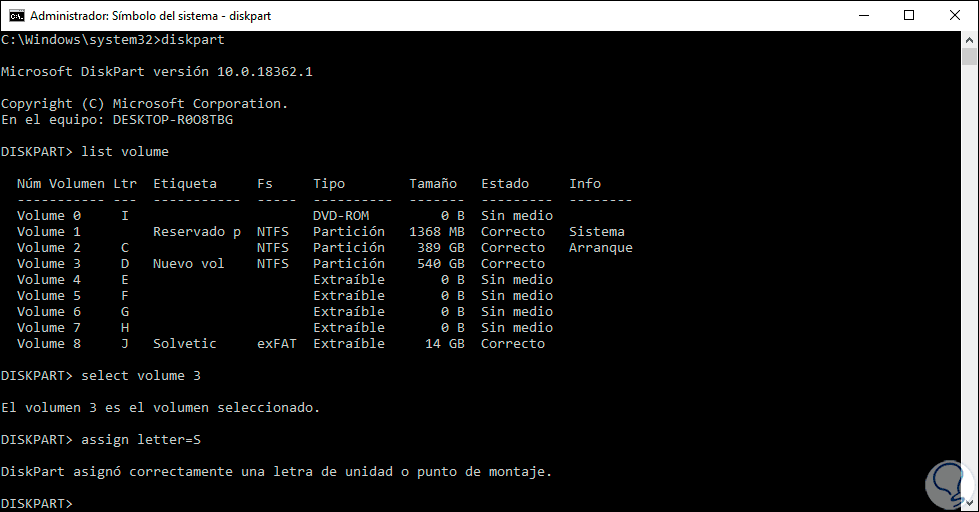 Ahora simplemente ejecutamos lo siguiente para asignar la letra, en este caso la letra S: