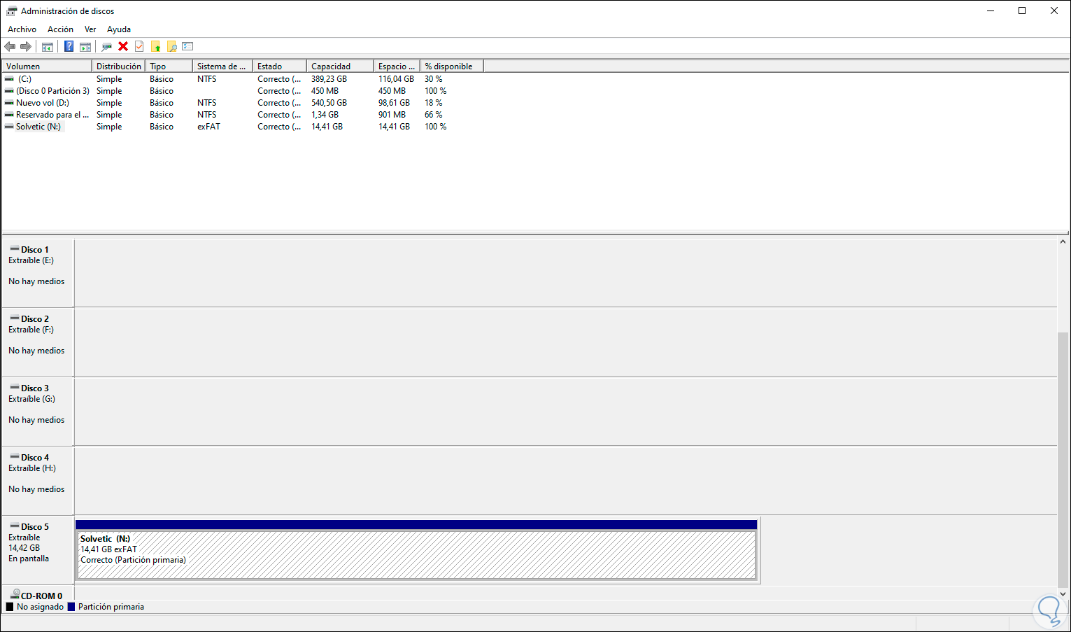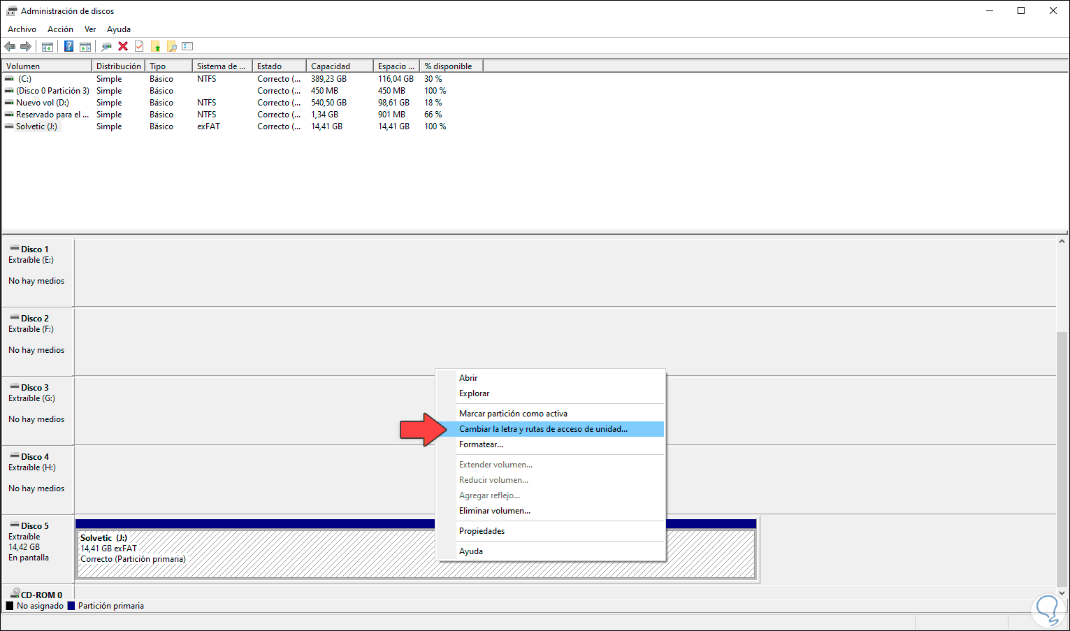 2. Cambiar letra de unidad desde el Administrador de discos en Windows 10