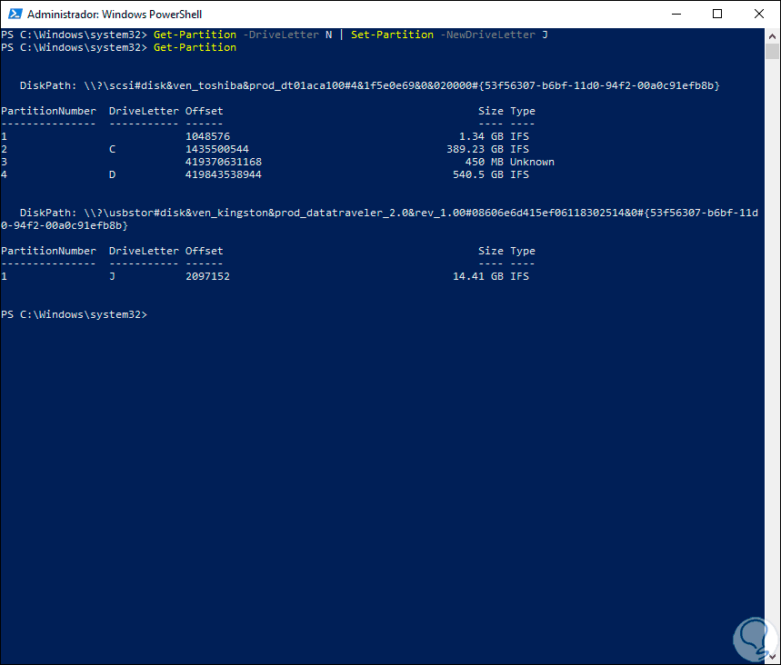 3. Cambiar letra de unidad desde el Windows PowerShell en Windows 10