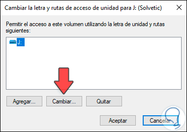 Allí damos clic sobre el botón “Cambiar” y en la siguiente ventana seleccionamos la letra deseada del listado desplegable: