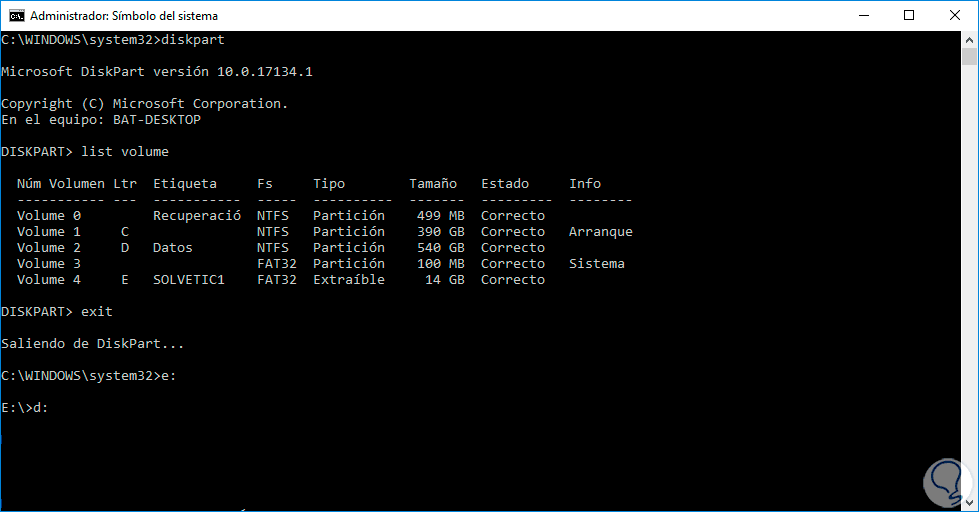 4. Cambiar letra de unidad desde el Símbolo del sistema en Windows 10