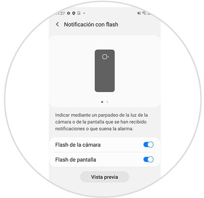 Vas a ver varias opciones. Debes entrar en "Notificación con flash" para poder activarlas.