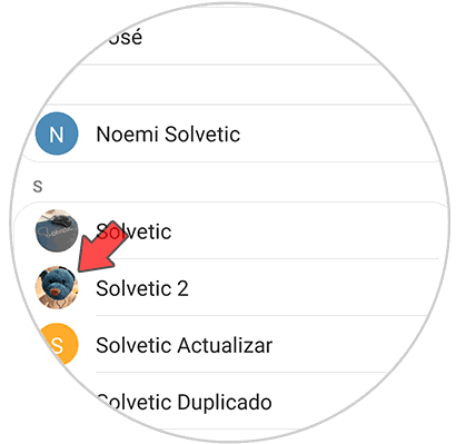 Lo siguiente que debes hacer es seleccionar aquel contacto al que quieres poner una foto, seleccionado el círculo lateral.