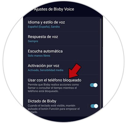 Desde esta pantalla podrás selecciona aquellos ajustes que te interesen como cuando quieres que se active o si se puede usar con el teléfono bloqueado.