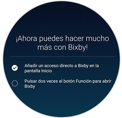 A continuación verás una nueva pantalla en la que podrás decidir si quieres o no tener acceso directo a Bixby.