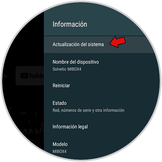 Aquí ya veremos que contamos con la opción de “Actualización del sistema”. Pulsamos en ella para iniciar el proceso.