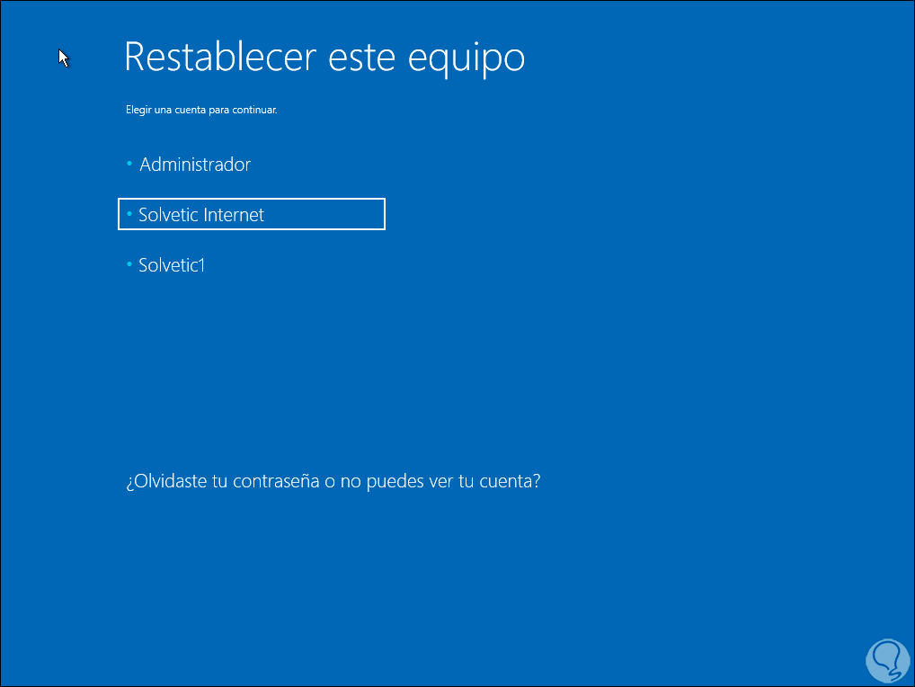 Pero, qué pasa si por alguna razón deseas restaurar el equipo y se te ha olvidado la contraseña, ¿no lo puedes hacer?, la respuesta que te da Solvetic es sencilla, la respuesta es sí se puede y hoy te explicaremos como hacerlo. Te dejamos también el videotutorial con los pasos necesarios para resetear nuestro equipo sin disponer de una contraseña.